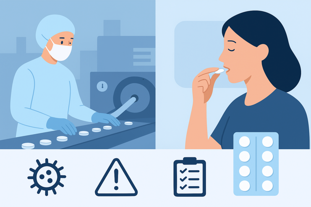 Real-World Example: In 2014, a manufacturer recalled several batches of dietary supplement tablets after Salmonella contamination was detected in raw plant-based excipients used in production. Even though tablets are considered low-risk, contaminated excipients introduced objectionable microorganisms into the final product, prompting a nationwide recall.